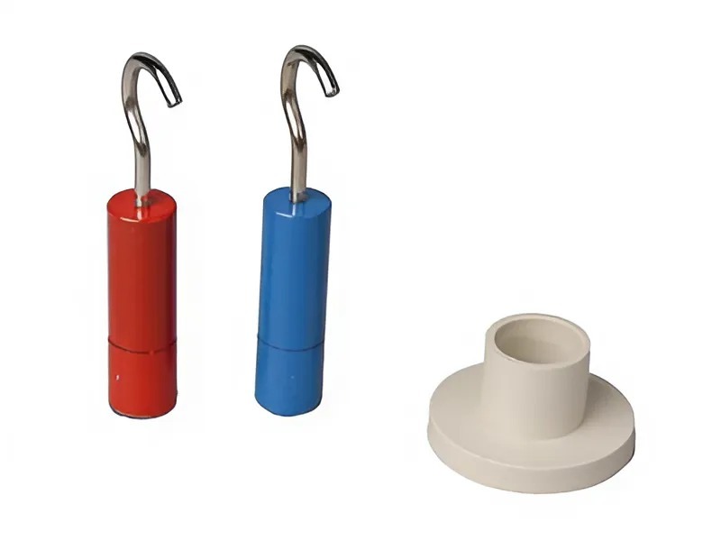 Цилиндры состоят из стальной части (с крючком для подвешивания груза) и свинцовой. Снабжены стругом для зачистки торцов свинцовых частей цилиндров.