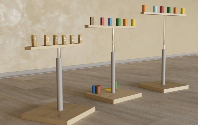 В данном наборе находится стойка с мишенями-целями, используемая вместе с мячом-маятником для различных игр. Стойка регулируется по высоте и на ней находятся деревянные детали, с одной стороны у которых нарисованы геометрические фигуры, а на другой - цифры на фоне различных цветов. Увлекательные упражнения с этой стойкой помогут развить у детей ловкость, внимание и координацию.Существует множество вариантов игр. Например, можно предложить детям бросать мяч только в определенную фигуру, цвет или число. Также такую стойку легко комбинировать с упражнениями на доске Бильгоу и другими развивающими тренажерами.