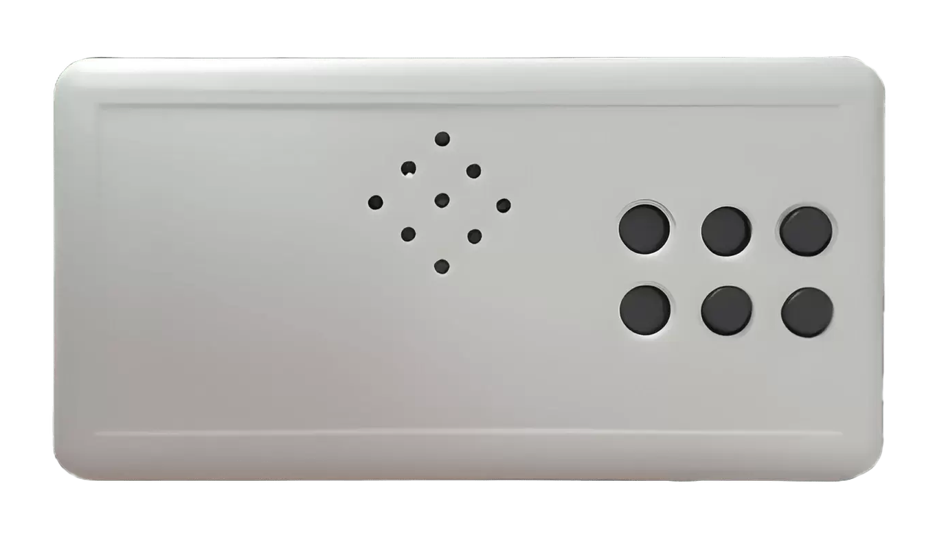 Шеститочие Брайля выполнено в увеличенном масштабе в виде 6 круглых колпачков. Каждый колпачок может быть утоплен, либо выступать на 1 мм над поверхностью лицевой панели прибора. Символы Брайля устанавливаются посредством нажатия разных комбинаций колпачков. После установки символа по короткому нажатию на стартовую кнопку (кнопка хорошо тактильно различима), расположенную на торцевой поверхности прибора, производится его озвучивание.