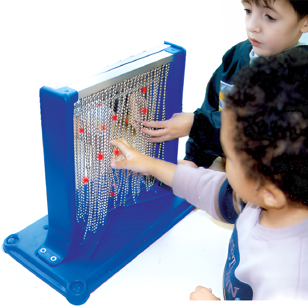Возьмите зеркало в руки и оно начнет вибрировать, а огоньки, находящиеся на корпусе, засветятся разными цветами. Дотронувшись до цепочек на зеркале вы услышите приятную мелодию. Развивает слуховое восприятие, хватательные рефлексы и тактильные навыки.