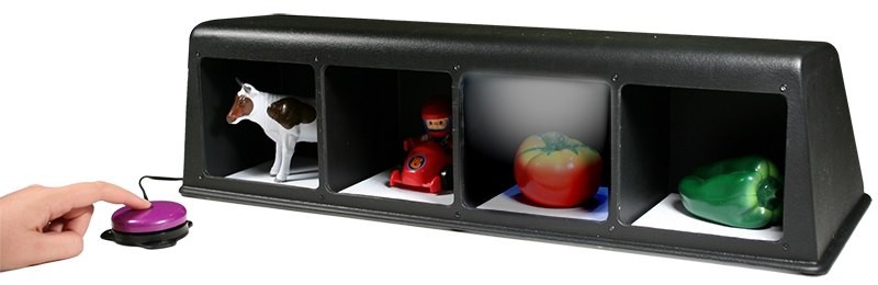 Разработан специально для детей с ослабленным зрением. Коммуникатор обеспечивает прекрасное освещение объектов. Четыре отделения размером 13х13х13 см позволят Вам поместить туда множество различных предметов для изучения.