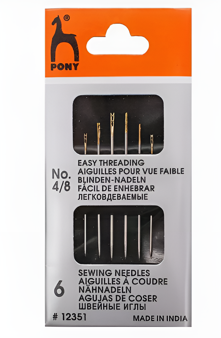 Ушко иглы имеет клиновидное углубление, которое направлено в сторону острия . Нитка втягивается через клин в ушко движением сверху вниз. Форма клина несколько сглажена, поэтому нить не может выскользнуть в обратном направлении, ее можно вытащить только через ушко. Гладкая ровная поверхность иглы гарантирует хорошее скольжение в ткани и защиту от ржавчины. Клин на игольном ушке позволяет быстро и без проблем вдеть нитку без вдевателя людям со слабым зрением.