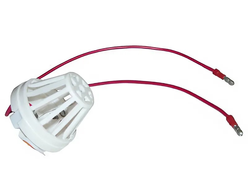 Прибор представляет собой прорезной корпус, выполненный из термостойкого пластика, со спиралью из нихромовой проволоки (O = 0,4 мм; R = 2 Ом) и соединительных проводов со штекерами.