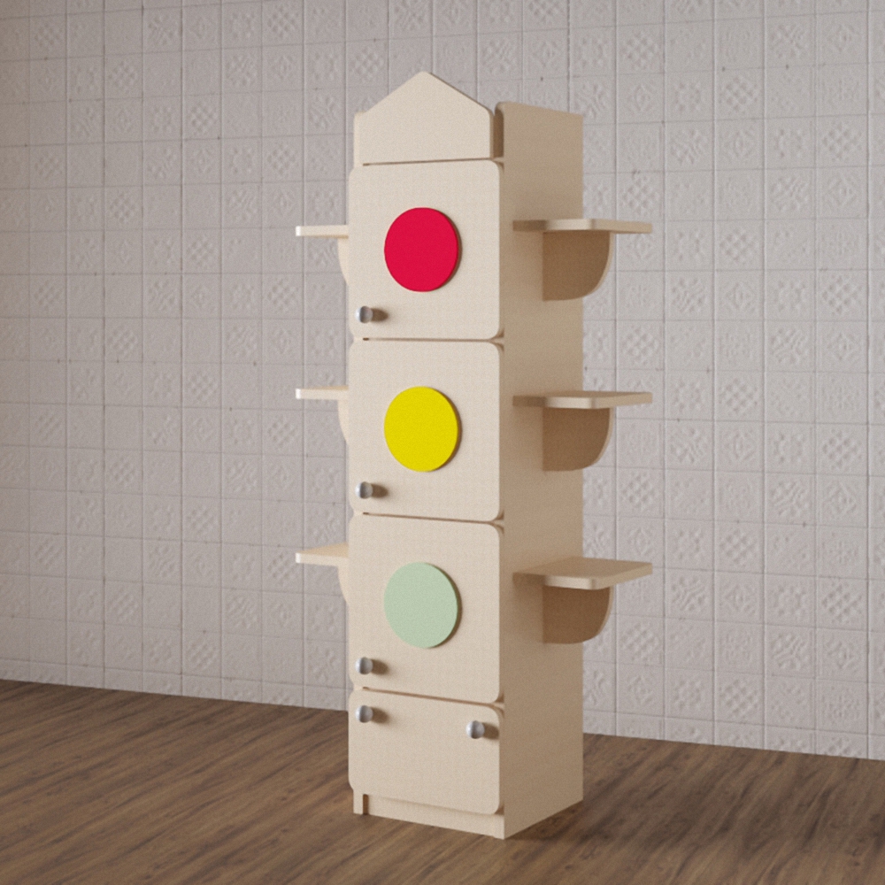 Шкаф «Детская фантазия» — необычный элемент интерьера детской комнаты, который подходит для мальчиков и девочек разных возрастов. Данная модель шкафа выполнена из качественных, а главное безопасных материалов, что позволяет детям раннего возраста самостоятельно складывать вещи, без помощи взрослых. Дверцы шкафа легко открываются и закрываются, а глубокие, вместительные полки для одежды, а также иных вещей и даже игрушек, позволяют держать все в поле зрения ребенка. Необычный дизайн шкафа привлекает внимание детей, что стимулирует к поддержанию порядка и занятиям малышей разного возраста.