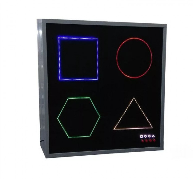 Панно с интерактивными светящимися фигурами - прекрасный способ развивать мышление и память у детей. Такая интерактивная игрушка понравится всем детям без исключения, так как имеет множество интересных светящихся деталей и кнопок. Данная панель имеет возможность устанавливаться на стену, что облегчает удобство использования и открывает много новых возможностей при использовании. На панели представлено восемь геометрических фигур, которые дети смогут включать и выключать независимо кнопками. С такой интерактивной панелью вы сможете придумать большое количество развивающих игр и занятий. Например, показывайте карточки с фигурами ребенку, а он должен будет нажимать на определенную кнопку на панели. Такой процесс отлично развивает не только память, но и логическое мышление. Если вы хотите подарить ребенку интересную игрушку, которая будет приносить много положительных эмоций и пользы, то обязательно рассмотрите этот вариант. Имеется возможность изготовления панно с разным количеством и типами фигур (оговаривается индивидуально с учетом пожеланий заказчика).