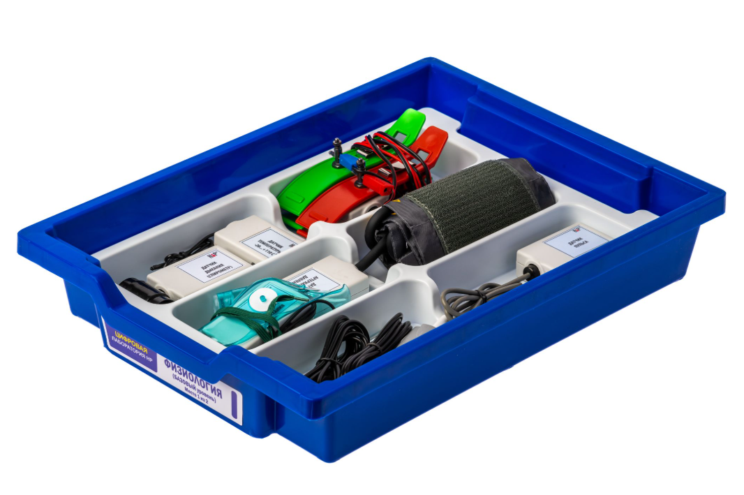 Цифровая лаборатория по физиологии (базовый уровень) включает в себя датчики, позволяющие проводить исследования по функционированию человеческого организма.